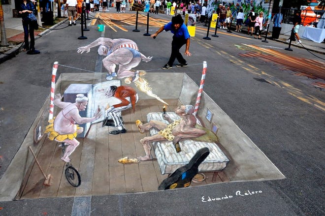 How much does Chalk Art services Cost. A Sidewalk Artists 3-D Works. Director of the International Street Painting Society Jennifer is a chalk artist with 9 years of street painting experience over 25 years of advertising experience and a lifetime of.
